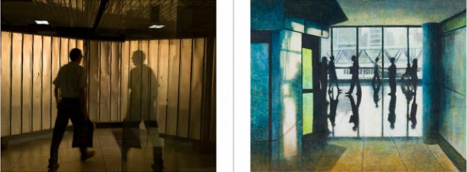 Marcel van Hoef and Theo Derksen make their art from a common base, reality shows itself to them as an image, something to look at. The painter and photographer make a selection from this. Both place reality in a framework. And in the selection they have a shared predilection that you could call a common theme: that is the question of what change is.