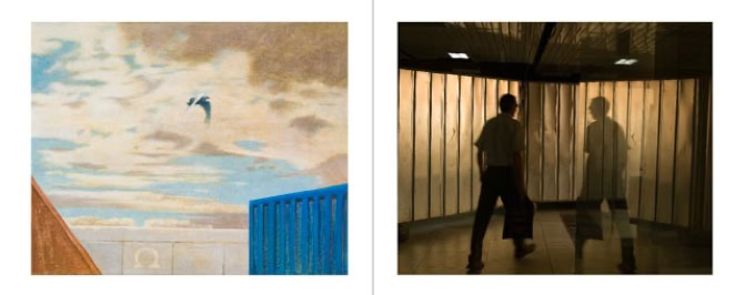 The procedure they have followed is special. Each started at the same time with a work. The one with a photo, the other with a painting. Then they gave this work to each other with a request for a response. And they have exchanged this reaction again and they have asked for a reaction, and so on. They have taken three months for that. This resulted in two series of 16 works consisting of 8 photos and 8 paintings in four years.