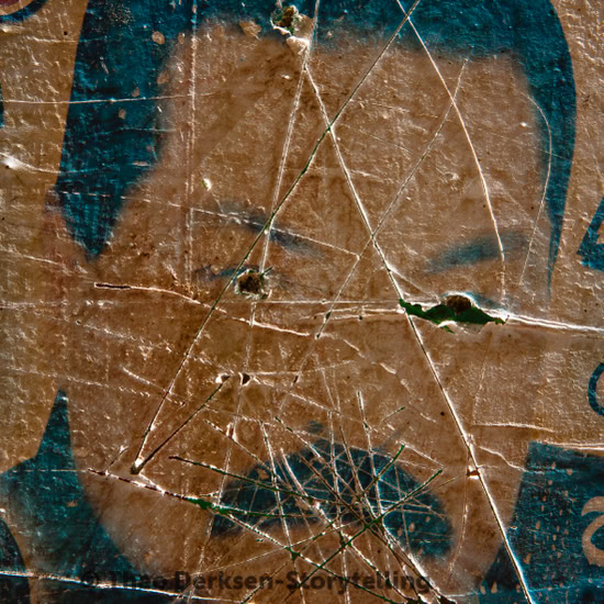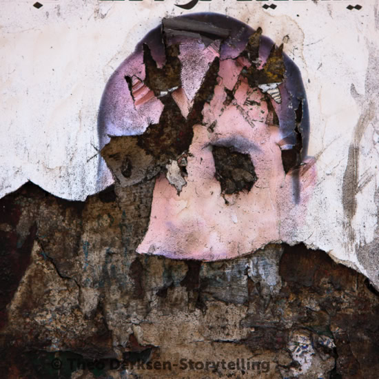 We are looking at portraits of people. Their diacritical signs have been affected. The motives for this defacement are a, yet the fragmentary remains of these portraits reveal underlying structures.In fact, another wall, disclosing a new dimension, appears: that of aesthetic perception. To be sure, scratches and tears diminish the portrait-function of these faces, but at the same time they intensify observation. They alert one to perceive more than what is actually shown. They evoke all kinds of associations and create new connections with the reality of the observation. Since the Romantic era the arts put great value on the fragmentary.