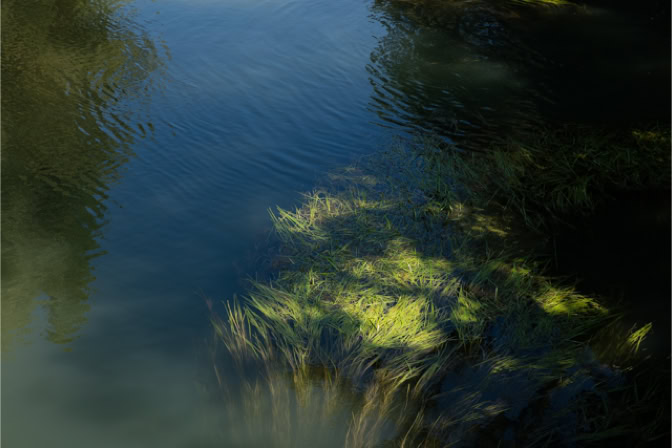 Water, land, muur en stilleven